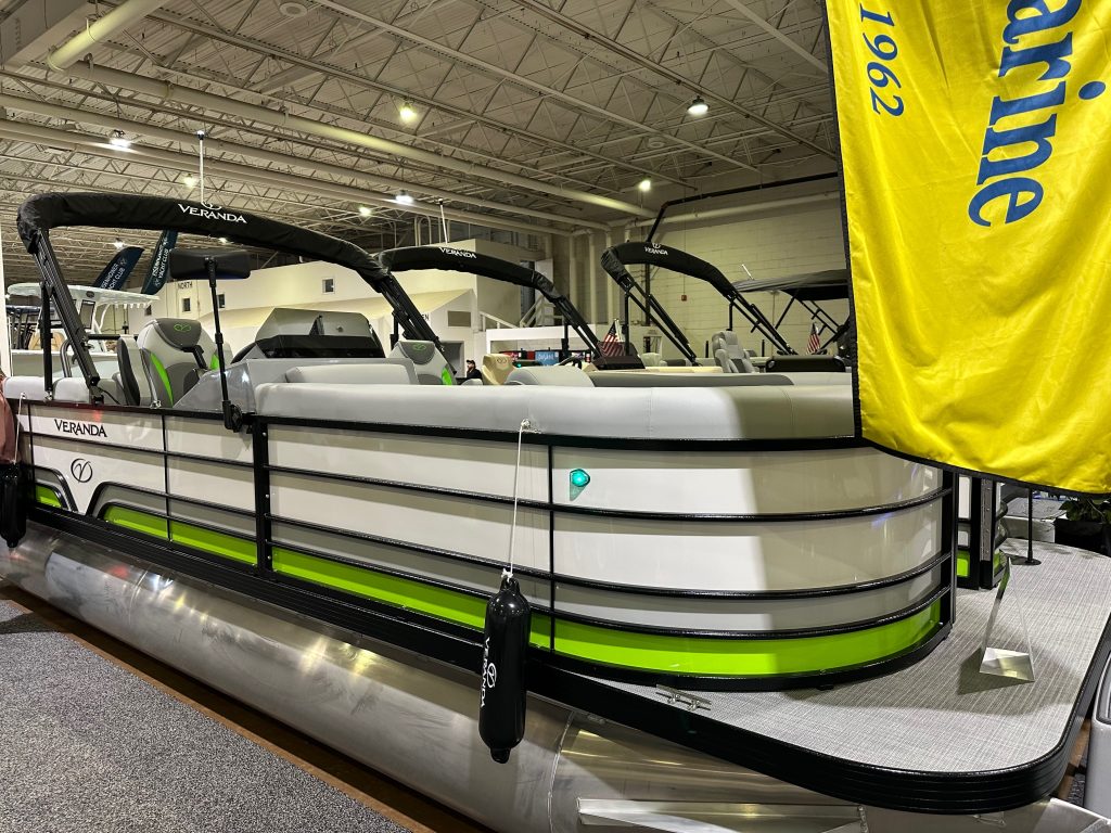 The new Veranda Vista Sport is your affordable and stylish passport to water sports excellence! Customers can choose from 20, 22, and 25-foot lengths and black, island green, or navy accent colors. Ideal for water sports enthusiasts, the Vista Sport offers greater horsepower and performance, plus hydraulic steering, a tow bar, a boarding ladder, and an optional Extreme Tower Package.