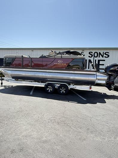 2025 VERANDA VR22RC POWERED WITH A YAMAHA VF200LB O/B PACKAGED WITH A BACKTRACK TANDEM AXLE TRAILER EQUIPPED WITH THE NEW Relax Series XL Package (NEW helm shifter panel w/cup holders & fire extinguisher storage, two-tone fence panels, center toon in-floor storage, two “high rise” hydraulic chair pedestals, power bimini, NEW Garmin Echomap graph MFD upgrade with NMEA and digital dash display) NEW Pillow Top Seating Option NEW Easy Step Ladder Upgrade 2025 Veranda VR22RC Tri-Toon Why choose the Veranda Luxury Pontoons Newly Redesigned Relax Series RC? The Veranda Luxury Pontoons 2025 Relax Series RC (Rear Chaise), available in 25, 22 and 20-foot lengths, features wrap-around luxury and soothing comfort along with thrilling new audio and lighting features, a redesigned console, new upholstery, and exterior enhancements. Veranda now offers XL and Tower Packages on all Relax Series RC’s to enhance your style and enjoyment while on the water. You’re sure to fall in love with the industry-leading value and maximum Veranda seating – all built upon the Veranda Difference. Relax in confidence, relax in comfort, and relax in the knowledge that you have made an intelligent, informed choice. Features may include: Patented All-Aluminum All-Welded Interlocking Deck System Fiberglass Console w/SeaDed Lined Elevated Platform Horn w/Stainless Grill Hour Meter L.E.D. Navigation & Docking Light Combo L.E.D. Courtesy Light on Console Pebble Beach Vinyl Tan Flooring or Pebble Beach Vinyl Grey Flooring Privacy Room Reclining Helm Seat Upgraded Dash Design 27” Triple-Toon Performance Package Stainless Docking Lights Stainless 6” Deck Cleats Stainless Quick Release Bimini Hardware Under Console Storage Integrated Performance Motor Pod 25” Pontoons on VR20RC and Bi-Toon Models Blended Latte or Carbon and Dove Grey Upholstery Bluetooth Audio Bazooka Subwoofer Base Tube Phone USB/USBC Charging Bow and Stern Dual High-Back Captain’s Chairs